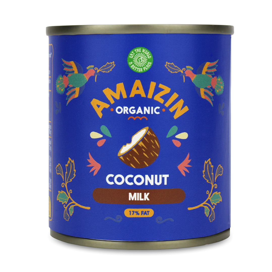 COCONUT MILK - NAPÓJ KOKOSOWY BEZ GUMY GUAR (17 % TŁUSZCZU) BIO 200 ml (PUSZKA) - AMAIZIN