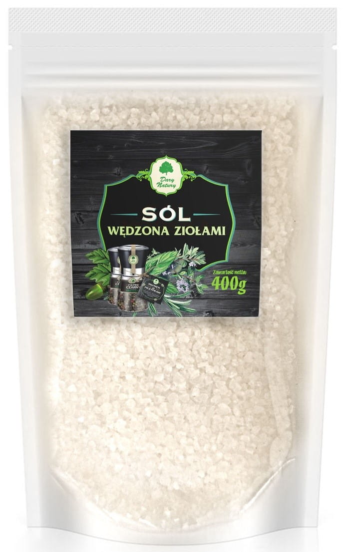 SÓL WĘDZONA DYMEM Z DREWNA DĘBOWEGO I ZIÓŁ (UZUPEŁNIENIE) 400 g - DARY NATURY